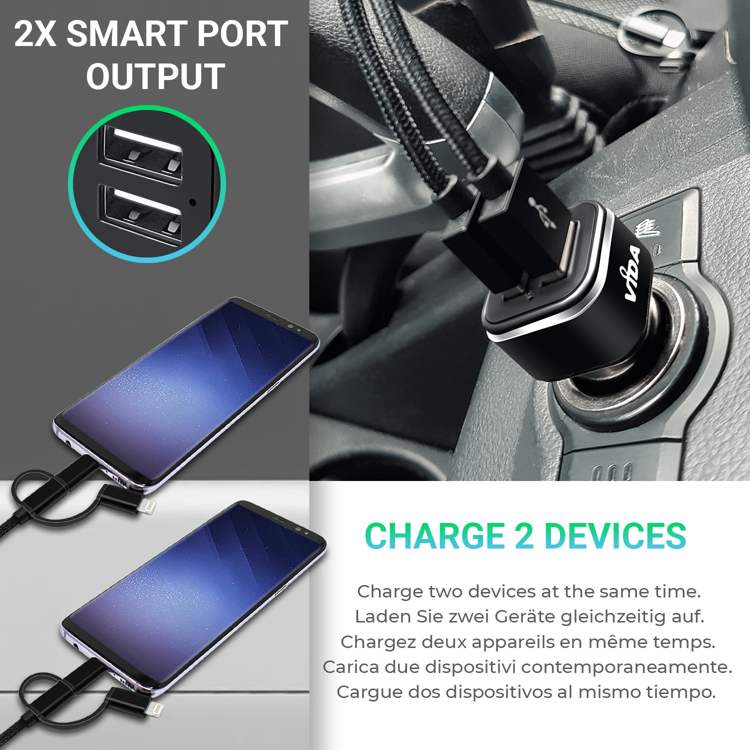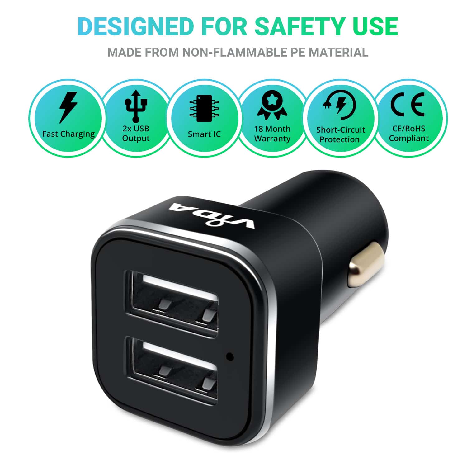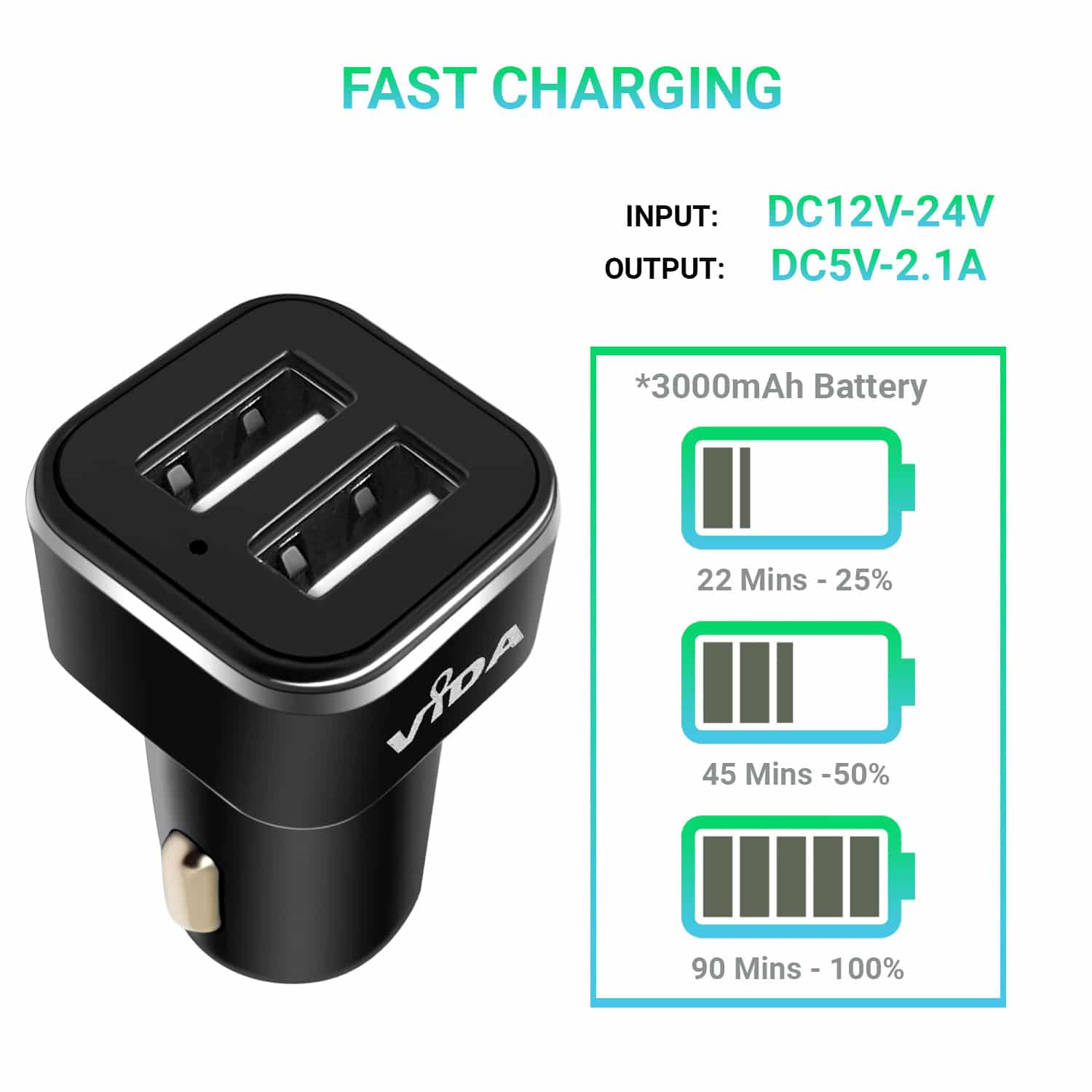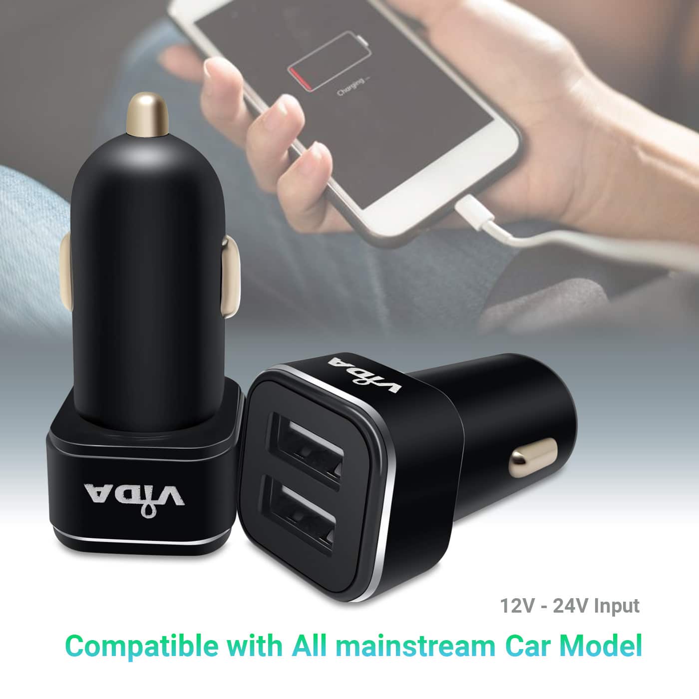 Vida IT 2.1A Dual USB Car Charger for Mobile Phones and Tablet PCs - Keep your device charged while in your car.