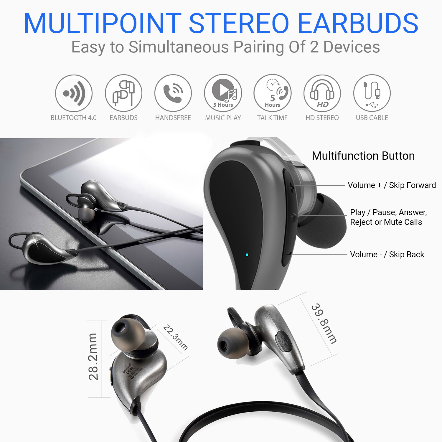 Vida IT V8 Stereo Sports Bluetooth 4.0 Earphones Headset (Black/Silver)
