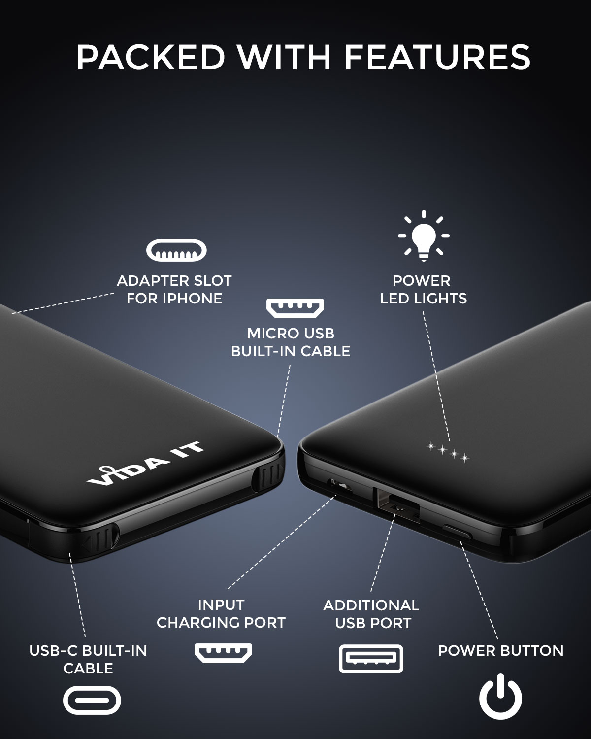 2 reviews for Vida IT vBot 5000mAh Power Bank Portable Charger with Built-In Cable for Mobile Phone